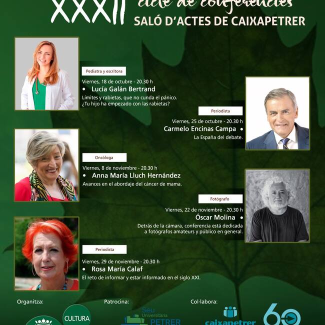 La conferencia de Rosa Mª calaf comenzará a las 20.30 horas en el salón de actos de Caixa Petrer. / Ayto. de Petrer