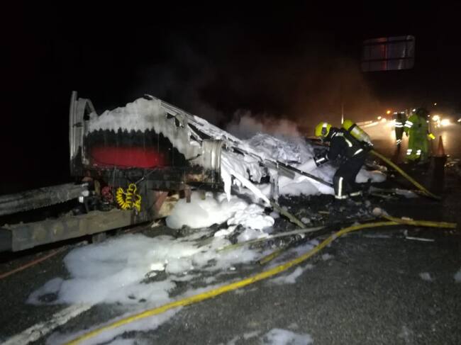 El incendio de un camión en la A-3 obliga a una doble intervención de los bomberos