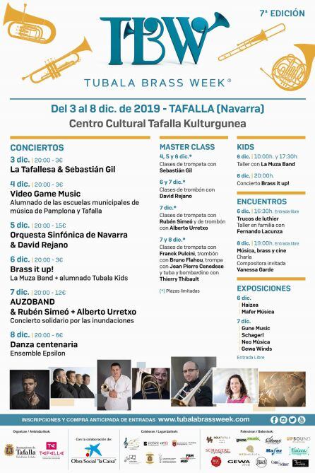 El mes de diciembre trae de nuevo a Tafalla lo mejor de la música de viento metal. La séptima edición de la Tubala Brass Week combina conciertos, charlas, talleres de música y clases magistrales de la mano de grandes intérpretes. Los trompetistas Sebastián Gil y Rubén Simeó, los trombonistas David Rejano y Alberto Urretxo, el cuarteto francés Ensamble Epsilón y los riberos de La Muza Band. Junto a ellos formaciones locales como la banda La Tafallesa, las escuelas de música de Tafalla y Joaquín Maya de Pamplona y la Orquesta Sinfónica de Navarra.
