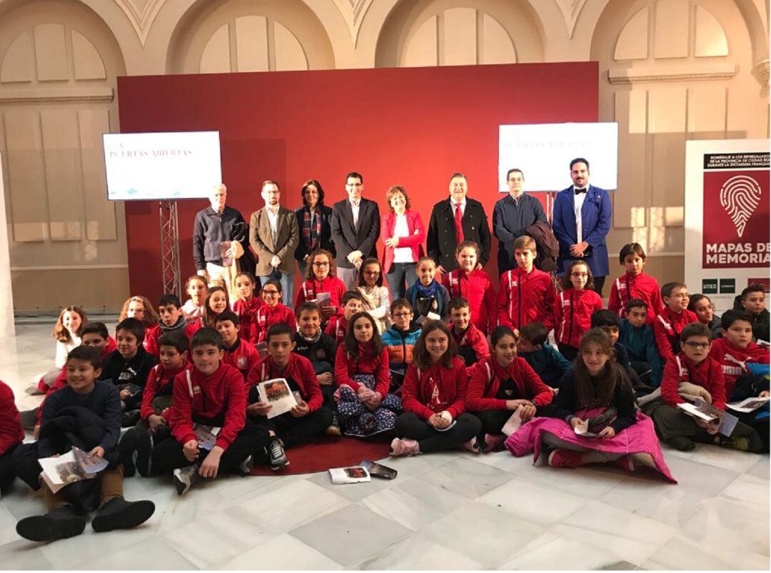 Con motivo del aniversario de la Constitución, la Diputación de Ciudad Real ha inaugurado este lunes las V Jornadas de Puertas Abiertas. Hasta el próximo jueves se espera que pasen por el Palacio Provincial un millar de personas. Los primeros han sido un grupo de alumnos del colegio público Ángel Andrade de la capital que han sido recibidos precisamente por el ilustre pintor a quien le fue encargada la decoración de este emblematico edificio con más de 100 años de historia ( 126 ha cumplido este año ).