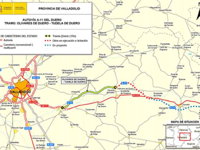 El Ministerio de Fomento ha iniciado las obras Autovía del Duero A-11 en el tramo de Olivares de Duero - Tudela de Duero, adjudicadas por un importe de 79.093.509 euros.
