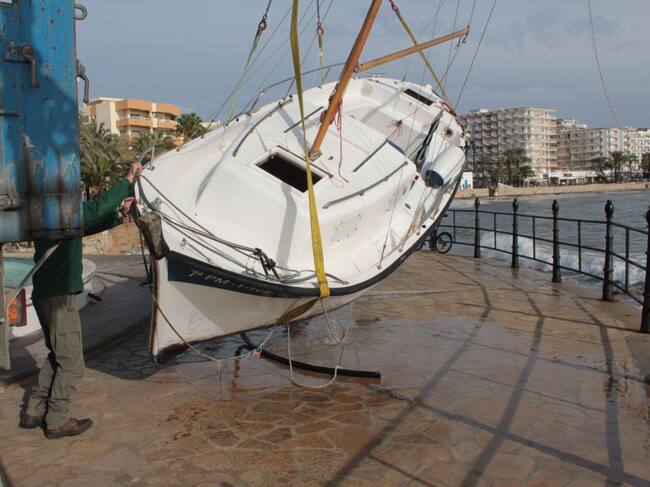 El temporal en el mar ha hizo encallar anoche a un barco contra las rocas del Paseo Marítimo de Santa Eulària. Los servicios municipales, ayudados por una empresa externa con una grúa, han extraído la embarcación tras recibir la autorización de su propietario, que se encuentra de viaje fuera del país.