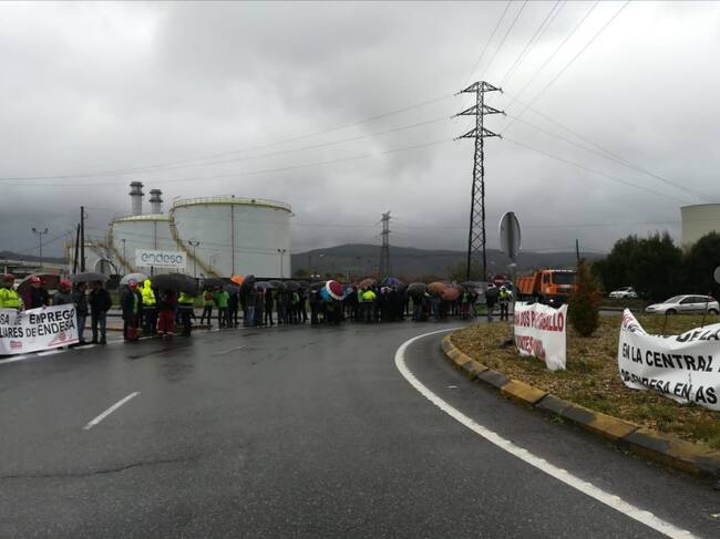 Concentración de trabajadores de auxiliares de la térmica de As Pontes. / EUROPA PRESS (EUROPA PRESS)