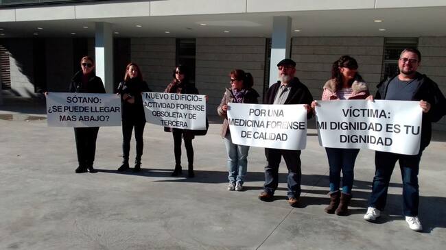 imagen de la protesta de los forenses esta mañana / Cadena SER
