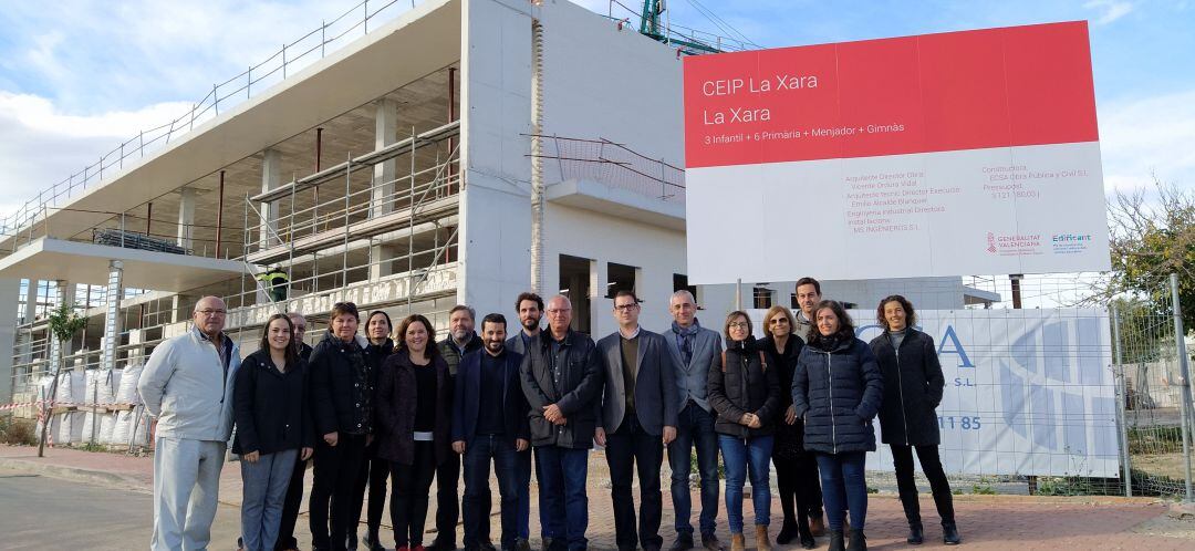Así se desprende de la visita cursada, hoy miércoles 11 diciembre, por el conseller de Educación, Cultura y Deportes, Vicent Marzà al desarrollo de las obras de construcción de este nuevo centro educativo, incluido en el Pla Edificant. Marzá ha estado acompañado por la alcaldesa de La Xara, Maite Pérez Conejero, el munícipe de Dénia, Vicent Grimalt, y las concejalas de Educación y Territorio, Melani Ivars y Maria Josep Ripoll; además del director general de Infraestructuras Educativas, Víctor García, entre otros responsables autonómicos, y representantes de Compromís per Dénia, como los concejales Rafa Carrió y Vicent Crespo, y el secretario local, Vicent Catalá.
