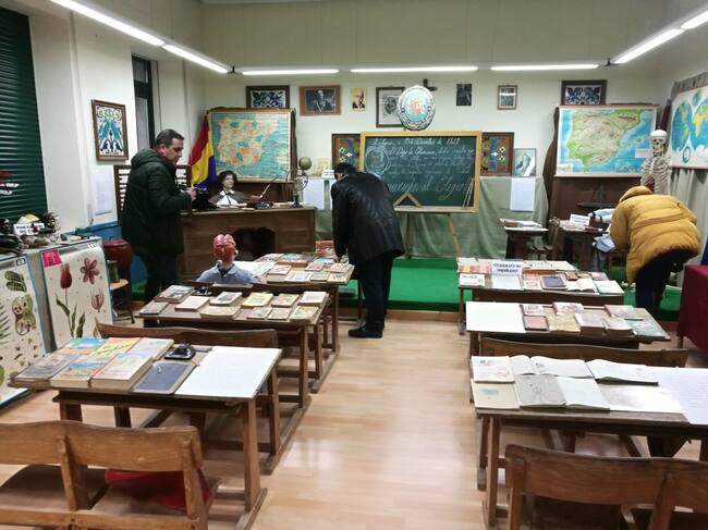 La biblioteca del centro acoge la exposición con los materiales utilizados en los colegios a lo largo de casi un siglo / Radio Segovia
