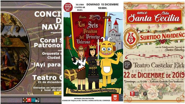 Carteles de las actividades para el calendario cultural de la Navidad en Elda 2019. / Ayto. de Elda