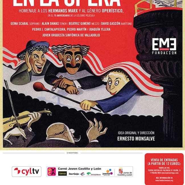 Los amantes de la ópera y del cine tienen este domingo 15 de diciembre en el Teatro Ortega de Palencia una cita ineludible con el concierto ‘Una noche en la ópera’ una idea original de Ernesto Monsalve, que dirige a la Joven Orquesta Sinfónica de Valladolid. El concierto familiar de Navidad comenzará a las 19 horas y representa un homenaje a los Hermanos Marx y al género operístico en el 75 aniversario de la célebre película.
