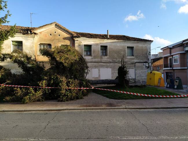 En municipios cercanos a Cuéllar, como Vallelado, el viento ha arrancado algunos tejados de chapa y derribado tapias.
