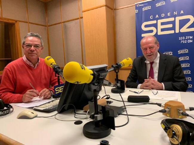 El presidente de la Diputación Provincial de Sevilla, Fernando Rodríguez Villalobos -a la derecha de la imagen-, junto al director del programa Hoy por Hoy Sevilla, Salomón Hachuel / Mar Badía