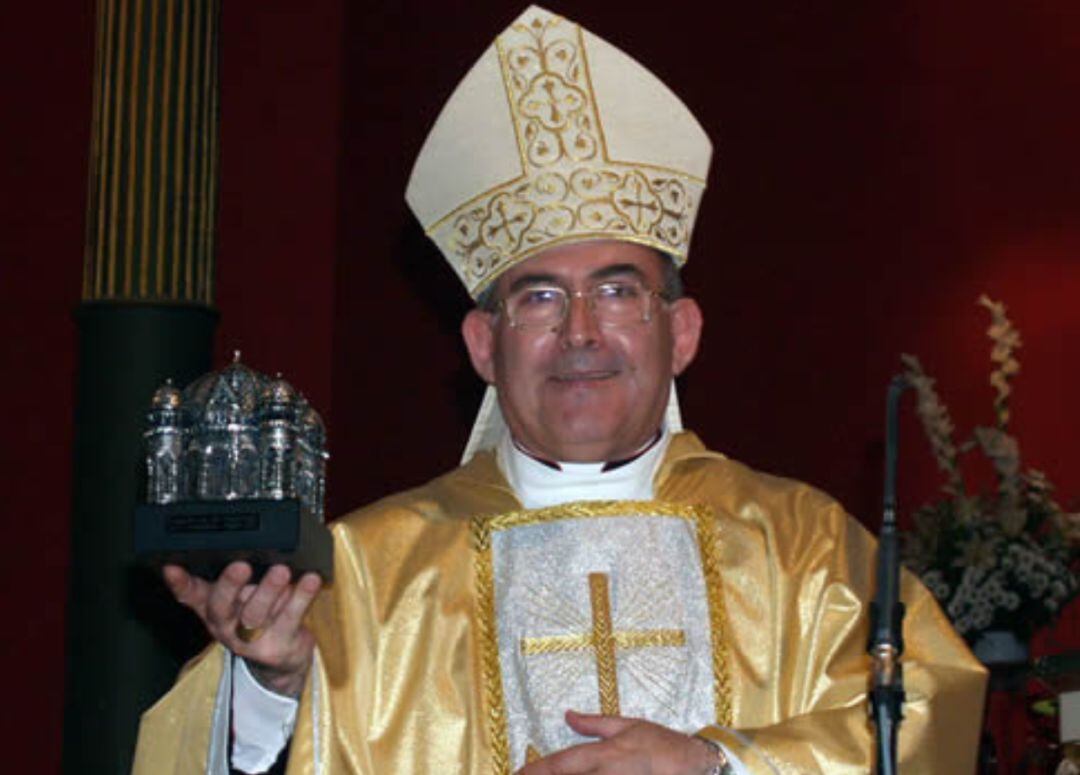Casimiro López Llorente, muestra una reproducción del cimborrio de la catedral de Zamora durante su etapa como obispo de esa ciudad / EFE