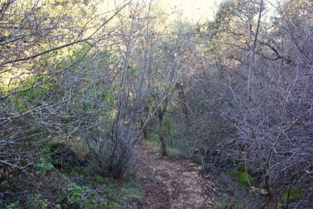 Hay que tener cuidado esta primera parte ya que hay algo de rocas sueltas, aunque en general el camino se hace fácilmente, seguimos subiendo y veremos que en la parte alta aparece un bosque de pinares, y llegaremos a la zona más alta, desde aquí veremos que hay varias opciones o desvíos, nosotros nos iremos a la parte de la derecha, para continuar adentrándonos en una zona de pinos en la que empezamos a ver mayor número de encinas y robles, en una parte de dehesa muy llamativa, sobre todo teniendo en Cuenca que estamos a unos minutos de la ciudad. En todo el trayecto atravesamos zonas de variada vegetación como rosales, aliagas, sabinas rastreras, etc., además no será difícil divisar alguno de los buitres leonados que habitan en estas zonas cercanas a la ciudad.