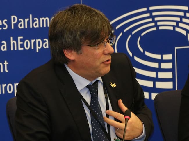 Carles Puigdemont, a la roda de premsa del Parlament Europeu