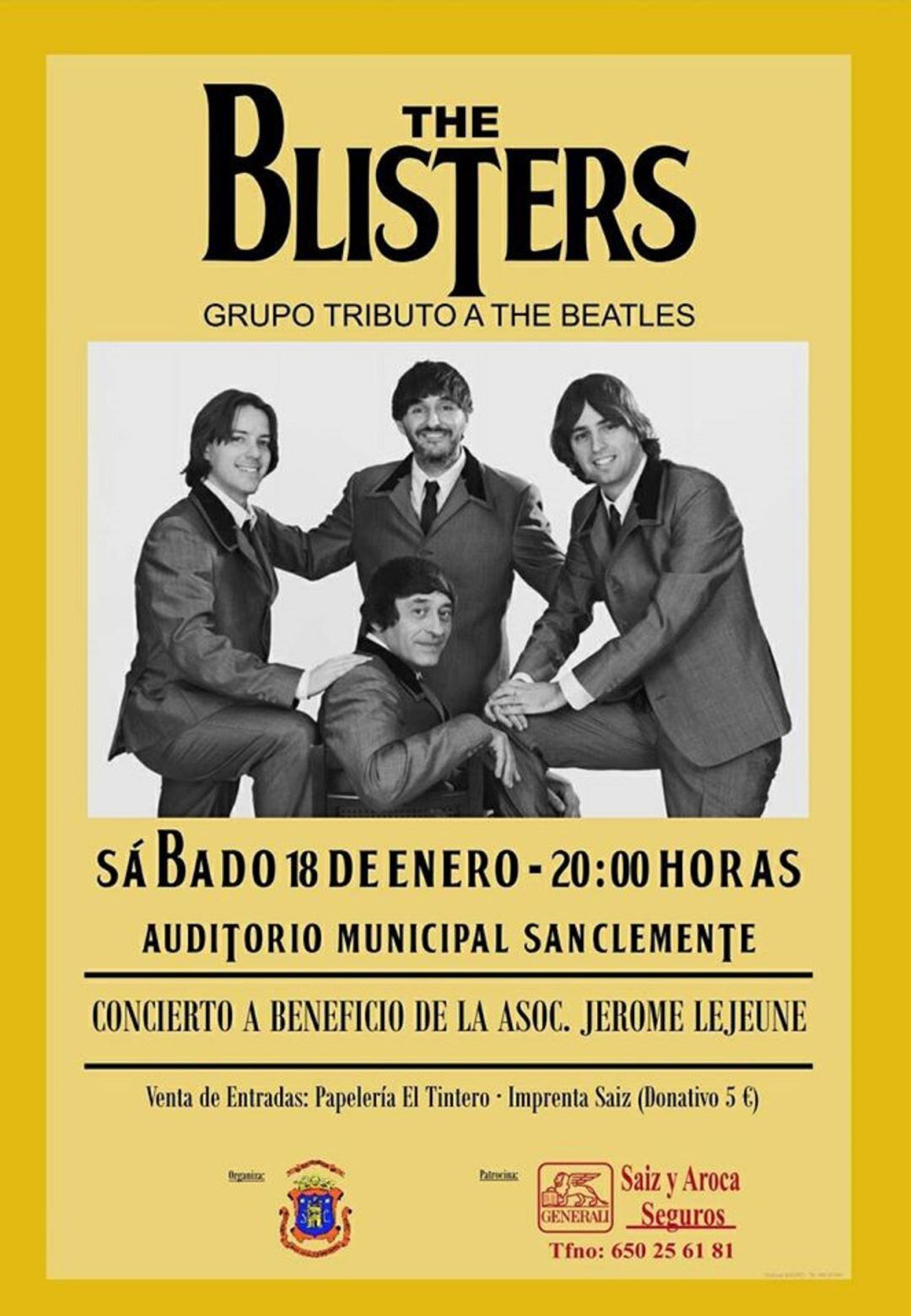 San Clemente organiza un concierto a beneficio de la asociación Jèrôme Lejeune. Se celebrará el próximo sábado 18 de enero y será un tributo a los beatles. Los asistentes podrán escuchar míticas canciones del grupo como 'Yesterday', 'All you need is love' o 'Let it be', interpretadas por ‘The Blisters’.