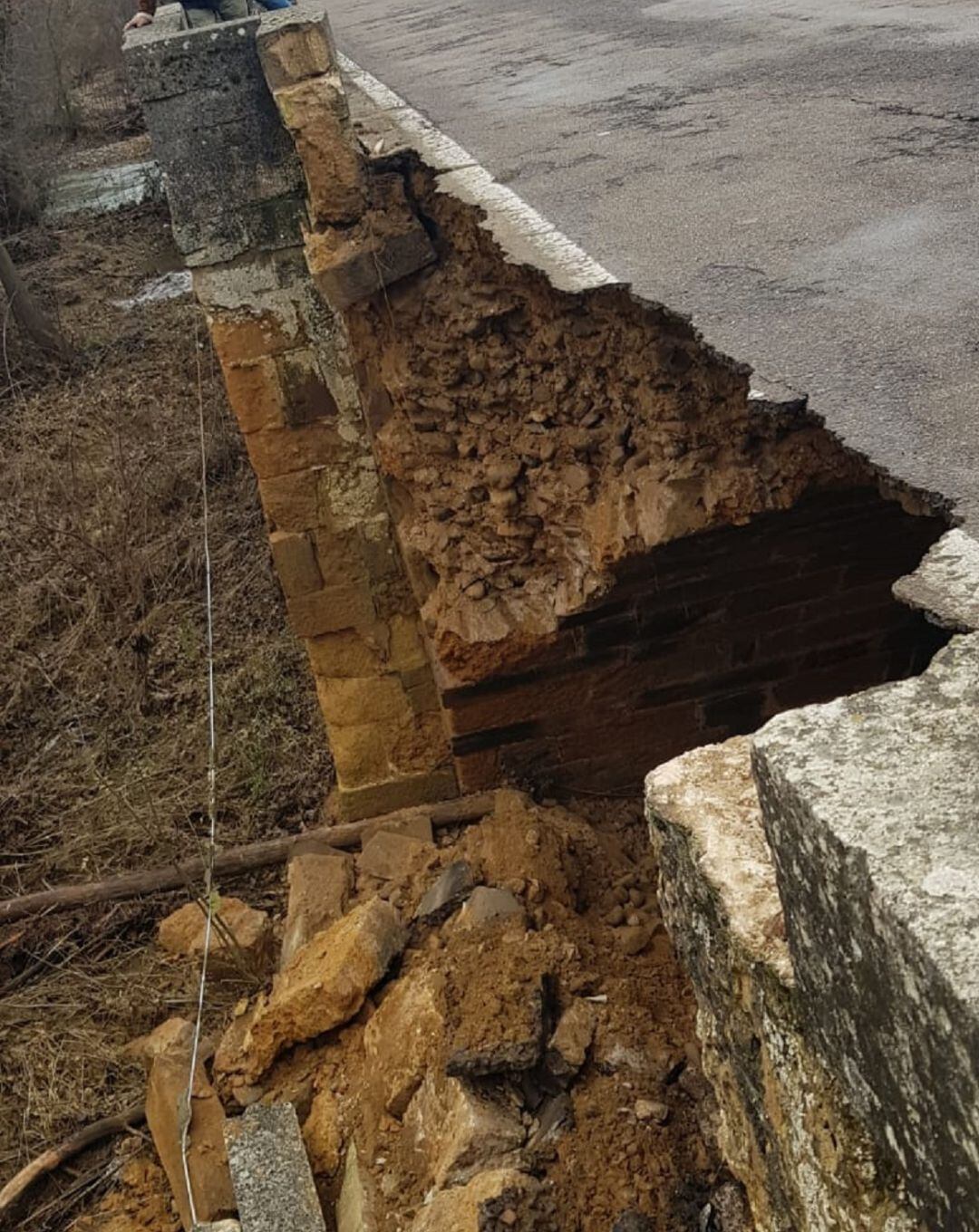 En torno a las 13 horas de hoy el Ayuntamiento de Saldaña recibía el aviso del derrumbe del petril del sexto ojo del puente de entrada a la localidad, que según su alcalde, Adolfo Palacios, estaba ya necesitado de algún tipo de intervención de mantenimiento. Esto sumado a los efectos del temporal de lluvia y viento de diciembre podrían ser las causas del colapso de parte del puente.