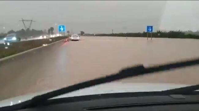 A7 inundada a la altura de Alberic por la crecida del río Xúquer / @Mavibaztan (Twitter)