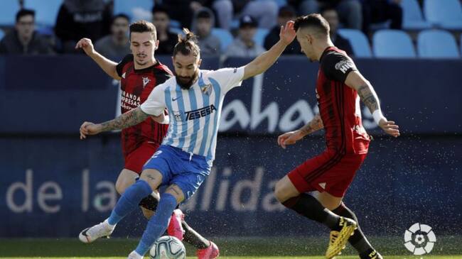 El Mirandés, tras unos minutos iniciales que necesitó para asentarse en el campo, empezó a triangular y a acercarse con peligro a la portería malaguista, minimizando al Málaga, con problemas para construir.