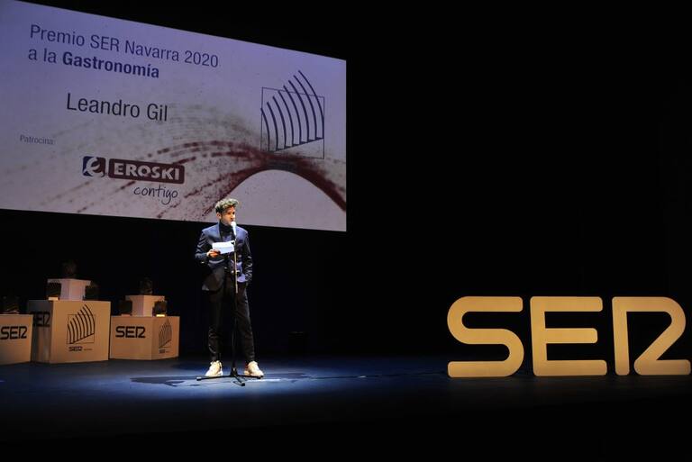 Premio SER Navarra 2020 a la Gastronomía, con el patrocinio de Eroski, para el chef Leandro Gil, del restaurante La Biblioteca en el Hotel Alma Pamplona