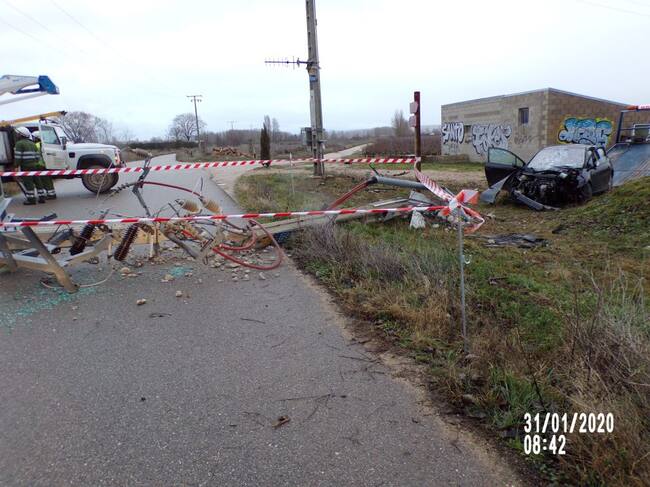 A consecuencia del impacto con el poste de la luz se ha producido un corte de suministro eléctrico que ha afectado al barrio de Santa Catalina así como a las fincas del entorno, incluida la Bodega Martín Berdugo. El suministro se ha restablecido en la misma mañana.