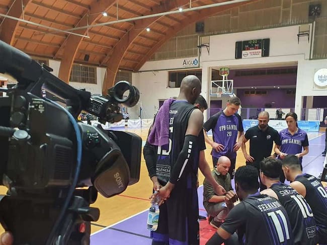 Tiempo muerto del partido frente al Alginet ante las cámars de Telesafor / UpB Gandia