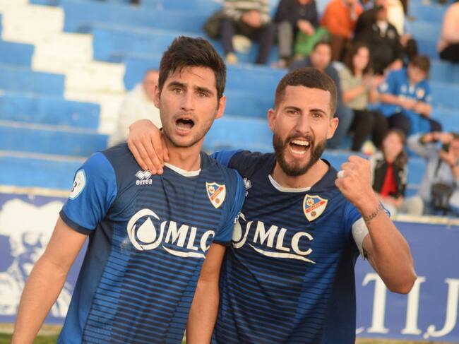 Fran Lara celebra el gol marcado al Motril, junto a Rosales / Carlos Hugo García