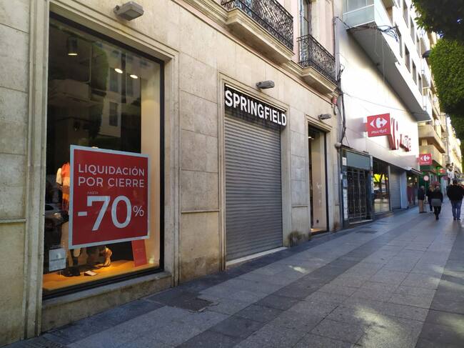 Una nueva franquicia de ropa echa el cierre en pleno centro de la capital. Tras las desapariciones en algo más de año y medio de Stradivarius (del grupo Inditex), cuyo local continúa hoy sin encontrar inquilino, y H&M, cuyo espacio ocupa desde las pasadas navidades la cadena de perfumerías Primor, Springfield cerrará la tienda que posee en el número 18 del Paseo de Almería a lo largo de las próximas semanas.