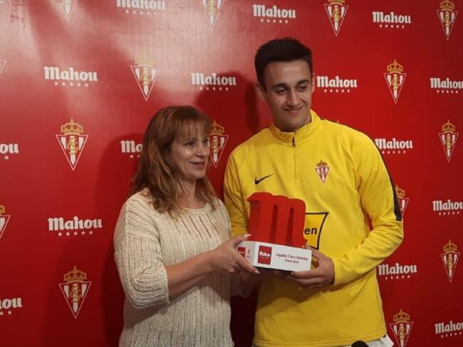 Pedro Díaz recoge el trofeo que le acredita como mejor jugador del Sporting del mes de enero / SER Gijón