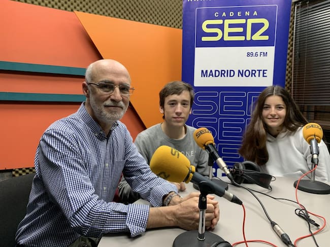 Marco Antonio García, coordinador y profesor, y con Celia Esteban y David Aguilar, alumnos del IES Rosa Chacel / SER Madrid Norte