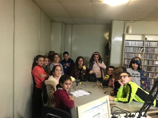 Alumnos, alumnas y tutora del CEIP "Virgen del Carmen" en los estudios de Dial Sierra / Ana Bermúdez