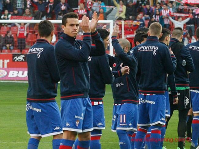 Futbolistas del Sporting saludan desde el terreno de juego antes de un partido de 2014 / RealSporting