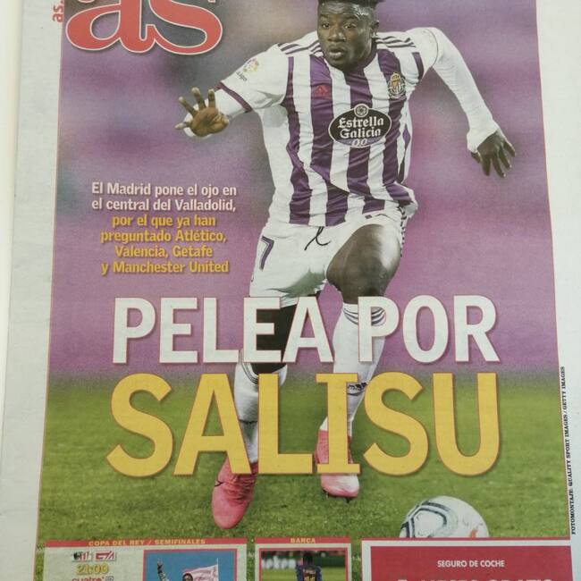 El central de Real Valladolid está en boca de todos. Confirmada la intención del Valencia para hacerse con una cesión imposible una vez que conoció la lesión de Garay, el diario AS dedicó su portada nacional para confirmar el deseo del Real Madrid por hacerse con los derechos de Salisu para la temporada que viene.