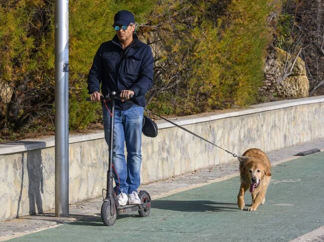 Un hombre en patinete eléctrico pasea a su perro por un carril bici / Getty Images