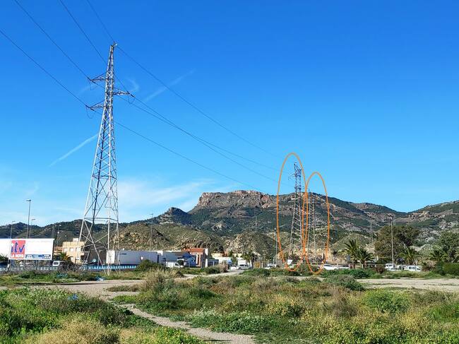 Dos de los apoyos de la línea eléctrica que va a ser soterrada en La Viña / Ayuntamiento de Lorca