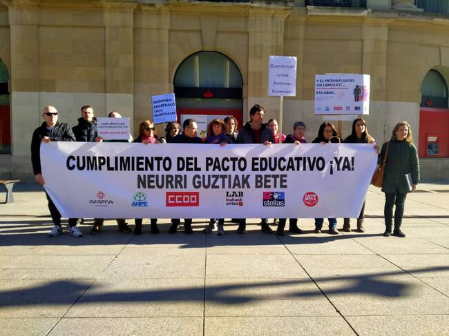 Protesta frente al Palacio de Navarra de los sindicatos firmantes del Pacto Educactivo / Cadena SER
