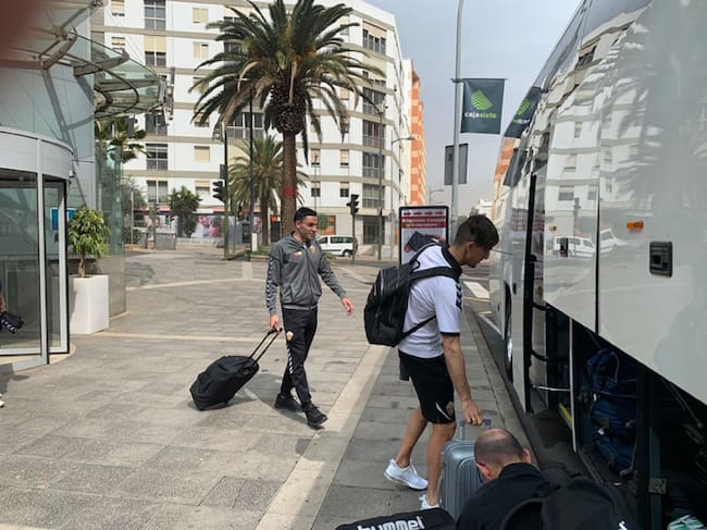 La expedición del Elche, que ha tenido que cambiarse de hotel este lunes. / Elche CF