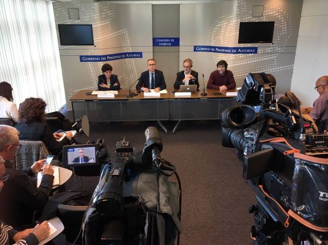 El consejero de Salud, Pablo Fernández, acompañado de responsables sanitarios. / Principado de Asturias