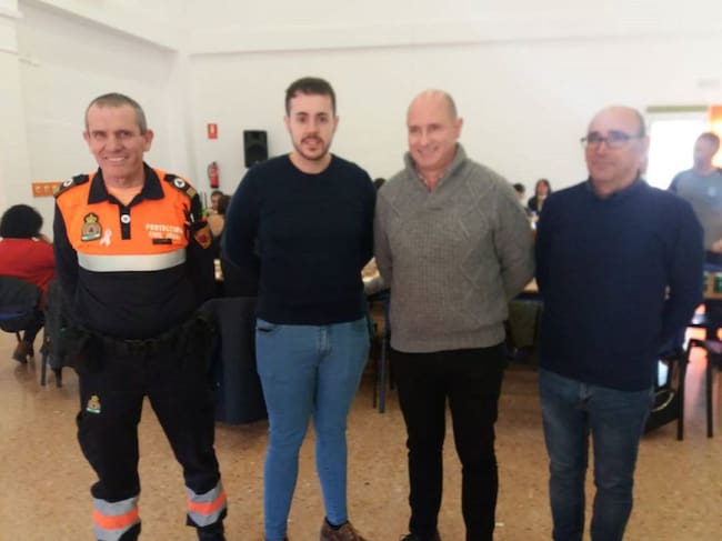 Juan José García, primero por la izquierda, acompañado por concejales, en la jornada de convivencia de la agrupación de voluntarios el pasado mes de noviembre / Radio Jódar SER
