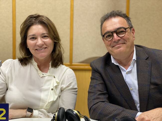 Mariló Ortiz, socia fundadora de Noon y Antonio Pérez, CEO de la firma, en los estudios de Radio Sevilla / ELENA CARAZO