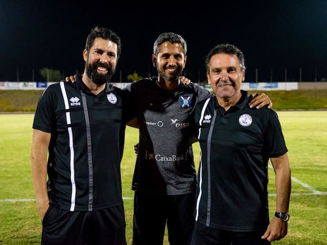El técnico del CD Marino, a la derecha junto con otros ayudantes / Cedida
