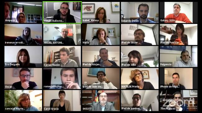 A excepción del presidente, Carlos Mazón, y del diputado también popular Juan de Dios, que han comparecido desde sus despachos en el Palacio Provincial, todos los diputados lo han hecho desde sus propios domicilios.