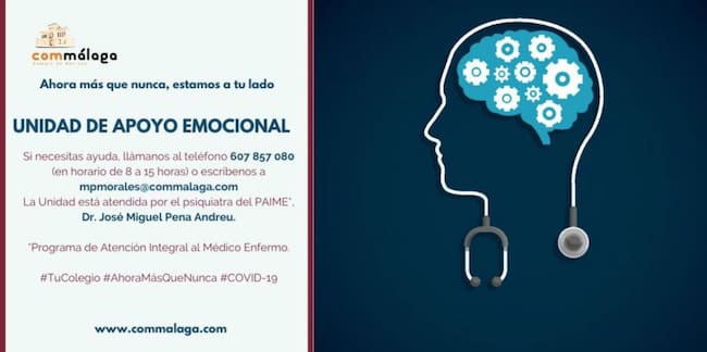 El Colegio de Médicos de Málaga, Commálaga, ha puesto en marcha la ‘Unidad de Apoyo Emocional’ con el fin de atender a doctoras y doctores que necesiten atención psicológica debido a la pandemia por COVID-19.