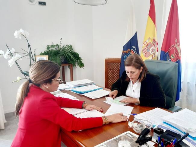 La alcaldesa de Arrecife, Ástrid Pérez, junto a la concejal de Bienestar Social, María Jesús Tovar. / Cadena SER