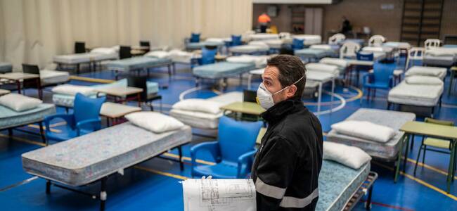 El hospital de campaña de Leganés está ubicado en el polideportivo 'Carlos Sastre' / Olmo Calvo