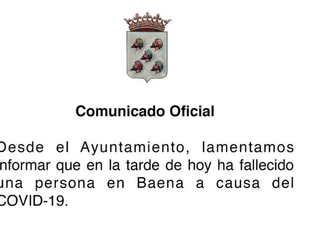 Comunicado del Ayuntamiento de Baena confirmando el fallecimiento de uno de sus vecinos a causa de la Covid-19 / Cadena SER