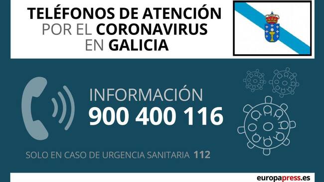 Asimismo, el departamento sanitario gallego tiene a disposición de la población el teléfono 900 400 116, que acaba de ser reforzado con más personal, para dar información general sobre el coronavirus. En este número se pueden resolver todas las dudas de los ciudadanos al respecto y también consultar sintomatología leve.