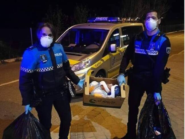 Agentes de Policía Local entregan al Hospital General de Segovia las máscaras de buceo donadas por los segovianos. / Radio Segovia