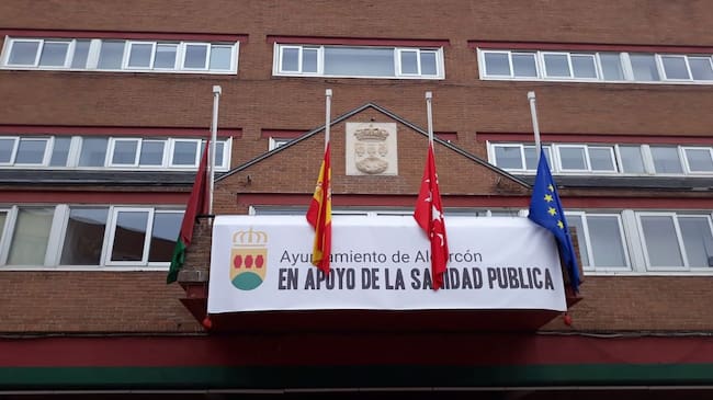 El Ayuntamiento de Alcorcón ha instalado una pancarta en el balcón del edificio consistorial como muestra de apoyo al personal sanitario y a la sanidad pública. Con este gesto pretende "mostrar el compromiso con la necesidad de contar con un sistema sanitario público fuerte y con todos los recursos materiales y personales necesarios", explica en una nota.