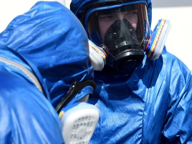 Two Russian soldiers prepare to sanitize the exterior of the Carlo Giovanni Rota retirement home for the elderly in Almenno San Salvatore on April 2, 2020 in Bergamo, Italy. The government of the Russian Federation has sent medical equipment, mobile laboratories and disinfection units, doctors and even military experts in a bacteriological warfare to help the Italian military in the areas most affected by the coronavirus outbreak. The Italian government continues to enforce the nationwide lockdown measures to control the spread of COVID-19. / Pier Marco Tacca (Getty Images) (Getty Images)