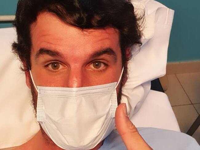 Asier de la Iglesia, en la imagen que el jugador ha difundido en redes sociales para anunciar que ha sido hospitalizado por coronavirus. / ASIER DE LA IGLESIA TWITTER