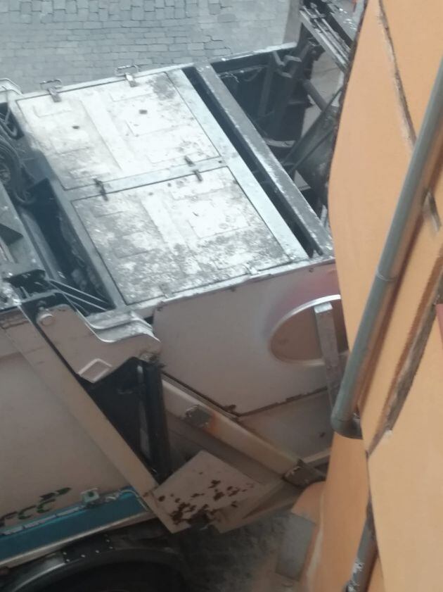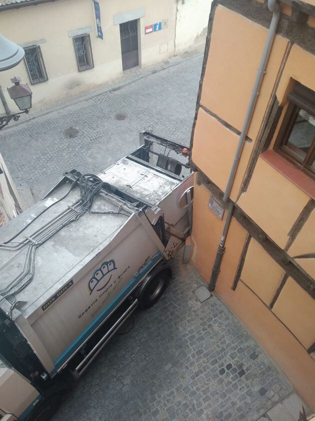 Un camión de la basura se queda atascado junto al Arco del Socorro